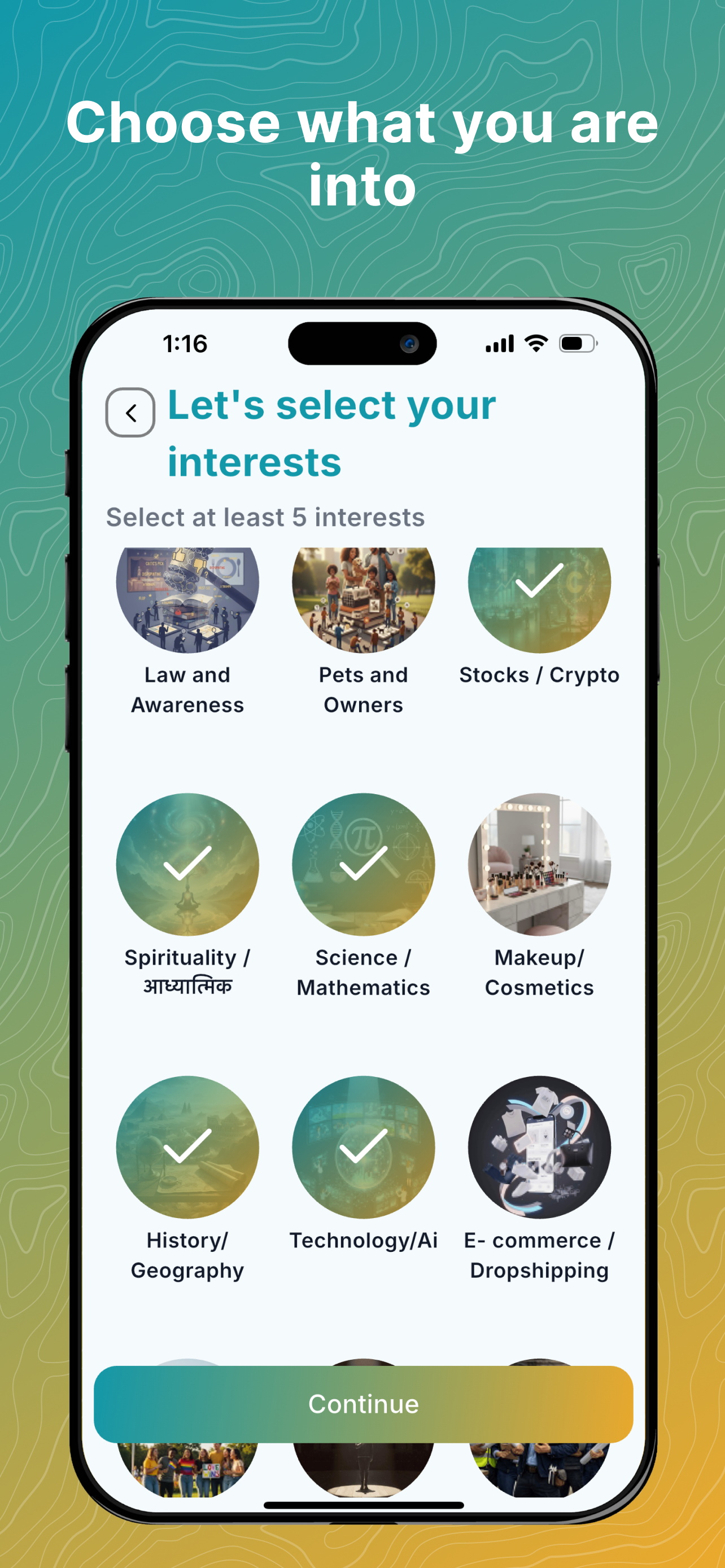 Choose from 40+ interests — from humour and fashion to psychology and technology.
